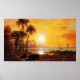 Albert Bierstadt Coucher de soleil tropical avec affiche de bateaux de pêche. Peinture à l'huile sur toile. Bien que Bierstadt soit typiquement associé à de vastes peintures de paysage de l'Ouest américain, il a également consacré de multiples toiles à des scènes tropicales en Floride et dans les Caraïbes. Ce coucher de soleil tropical est l'une de ses oeuvres les plus impressionnantes. Les palmiers et les bateaux de pêche à l'intérieur et autour de la baie s'animent avec des oranges ardentes et des rouges tandis que le soleil se couche sous l'horizon. Un grand cadeau pour les amateurs d'Albert Bierstadt, de paysages tropicaux et de couchers de soleil sur l'océan.