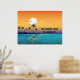 Coucher de soleil tropical, palmiers, affiche de l