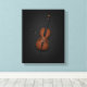 Cette illustration montre un violoncelle avec un arc couché à travers les cordes sur une toile noire. Cette oeuvre fait partie d'une série d'instruments à cordes dessinés par E. Motoyama en mars 2023 et n'est disponible que dans les boutiques Mozartini.