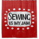 "Sewing Is My Jam" est un design de texte amusant avec une forme d'accent blanc entourée de points blancs texturés.