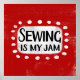 "Sewing Is My Jam" est un design de texte amusant avec une forme d'accent blanc entourée de points blancs texturés.