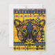 Cougar de couleur créative avec tons bleu et jaune et rose éclats dressés contre un brillant arrière - plan jaune. De minuscules étoiles multicolores et des bandes de couleurs apparaissent sur cette impression.