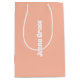 Voici la couleur de printemps tendance : Soft Pastel Peach. Ce sac cadeau moderne et élégant, avec un nom personnalisable, ajoute une touche élégante à vos cadeaux. Son design simple et épuré, en couleur solide, offre un charme intemporel. Découvrez nos couleurs printanières tendance pour plus de produits dans la même ombre ou découvrez d'autres teintes élégantes pour s'adapter à votre décor.