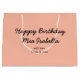 Voici la teinte printanière tendance et féminine : Soft Peach. Élevez votre cadeau avec notre grand sac cadeau d'anniversaire moderne et élégant, complet avec texte personnalisable dans une police et signature jolies manuscrites. Son design simple mais élégant, aux couleurs solides, offre un charme intemporel, parfait pour les anniversaires, les diplômes, Pâques, douches, et plus encore. Explorez nos couleurs de printemps polyvalentes pour coordonner les produits ou découvrez d'autres teintes élégantes pour s'adapter à votre décor.