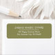Couleur tendance Vert olive. Créez une instruction moderne et élégante avec nos étiquettes d'adresse de retour personnalisables de couleur solide, avec une police manuscrite mignonne pour une touche personnalisée. L'adresse et le séparateur peuvent être personnalisés ou supprimés au besoin. Parfait pour ajouter une élégance classique. Design simple et propre avec des couleurs solides pour un charme intemporel. Magasinez nos couleurs tendance automne & hiver pour d'autres produits avec la même couleur ou d'autres couleurs tendance stylisées.