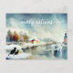 Couleur d'eau mignonne Chat d'hiver Carte de Noël