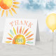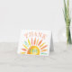 Dites merci avec un sourire ensoleillé en utilisant ce carte de remerciements plié, conçu pour un baby shower garçons et filles avec une esthétique boho douce. Doté d’un charmant soleil aquarelle, d’une typographie rétro et d’un mélange apaisant de tons bleus, jaunes et terre cuite muets, c’est la façon idéale de refléter la chaleur et l’amour de votre célébration. Que votre thème soit "ici vient le soleil" ou "vous êtes mon soleil", cette carte ajoute la touche finale parfaite à votre événement d'été. Idéal pour toute personne à la recherche d'une façon élégante et ludique d'express gratitude avec style. Envoyez du soleil dans chaque remerciement - commandez vos cartes pliées dès aujourd'hui !