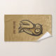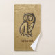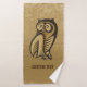 Icône de hibou sur arrière - plan grunge beige. Symbole de sagesse et de richesse. Texte personnalisé.