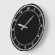 Cadran noir, chiffres d'heure blancs, couleur de main gris, forme ronde et horloge murale en acrylique. Peu de combinaisons de couleurs pour ceux qui préfèrent un design de couleur simple et minimal. Horloge pour vérifier votre heure et décorer aussi votre mur. Disponible également sur d'autres tailles et styles.