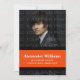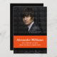 Élégante et moderne couleur de l'école Stripes Graduation Invitation en noir et orange avec une bordure simple rayée dans les couleurs populaires de l'école. Ce faire-part est parfait pour votre diplômé ! Facile à customiser, ajoutez simplement une photo de la grade et les détails de la fête de remise de diplômes de votre fils ou de votre fille. Cliquez sur "Customiser" pour trouver d'autres options de personnalisation.