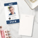 Badge de photo d'identification du personnel avec une couleur de bordure supérieure et inférieure modifiable (cliquez sur personnaliser, sélectionnez le calque "NameTagBadge3.2" et changez la couleur), une couleur de fond arrière modifiable et sur lequel vous pouvez également ajouter votre logo. Idéal pour tous les types de personnel sur les lieux de travail et lors d'événements tels que des réunions, des conférences, des concerts, des spectacles, des expositions, etc.