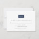 Épurées, chic et modernes, ces cartes de réponse de mariage ultra-modernes comportent "RSVP" sur un élément rectangulaire qui peut être personnalisé en un clic pour correspondre aux couleurs de votre mariage. Ajoutez la date de réponse souhaitée, les textes d'acceptation et de refus, ainsi qu'un champ pour le nombre de participants en lettrage sans empattement gris charbon moderne, puis ajustez la couleur à votre goût en suivant les instructions faciles ci-dessous. Les cartes sont au verso d'un motif grec moderne facultatif. Présentées en bleu marine classique et blanc.