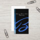 Un simple spectre de couleur bleu dégradé sur le côté gauche de ce design sur un arrière - plan noir jet envoie le focus à votre nom et monogramme initial. Votre premier apparaîtra dans la couleur correspondante, définie dans une police de script énorme mais de bon goût. La nature générique de ce design rend cette carte de nom adaptée à presque n'importe quel type d'entreprise ou d'industrie.