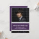 Sleek et moderne couleur de l'école Stripes Graduation Invitation en violet et blanc avec une bordure simple rayée dans les couleurs populaires de l'école. Ce faire-part est parfait pour votre diplômé ! Facile à customiser, ajoutez simplement une photo de la grade et les détails de la fête de remise de diplômes de votre fils ou de votre fille. Cliquez sur "Customiser" pour trouver d'autres options de personnalisation.