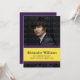 Sleek et moderne couleur de l'école Stripes Graduation Invitation en violet et jaune avec une bordure simple rayée dans les couleurs populaires de l'école. Ce faire-part est parfait pour votre diplômé ! Facile à customiser, ajoutez simplement une photo de la grade et les détails de la fête de remise de diplômes de votre fils ou de votre fille. Cliquez sur "Customiser" pour trouver d'autres options de personnalisation.