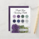 Ces cartes à palette de couleurs sont conçues pour compléter notre suite de mariage Rose Amethyst Purple. La carte comprend des nuances de couleurs de l'image ainsi que des nuances de marine, de vert sauge et de gris qui complèteront l'oeuvre d'art. Parfait pour aider vos demoiselles d'honneur à choisir des robes de couleur appropriée.