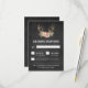 Country Chalkboard Deer Antler Wedding RSVP Cartes - présente un arrière - plan imprimé en damier avec un design floral et cerf en bois au sommet.