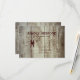 Carte de réponse mariage campagnard rustique sur un arrière - plan de planches en bois de grange en détresse. Entièrement personnalisable avec vos propres détails. Le verso de l'invitation a "RSVP". Voici l'ensemble d'invitations personnalisées de mariage correspondant :