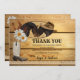 Carte de remerciements mariage avec deux chevaux en amour, avec botte de cowboy, fleurs marguerites et chaussures de cheval sur bois rustique et dentelle sur le devant et votre photo mariage sur le dos. Beau après un mariage à thème de pays et d'ouest, mariage de grange ou pour un couple d'amateurs de cheval.