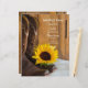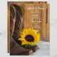 Customisez le menu Country Sunflower Western Mariage avec les détails du repas que vous pourrez servir à votre style de ferme ou de ranch thème brunch mariage, déjeuner nuptiale ou réception matrimoniale en ajoutant la salade ou le premier plat, entrée ou deuxième plat et dessert ou troisième plat. Ce charmant menu personnalisé de mariage comprend une photo florale d'une fleur de tournesol jaune, des bottes de cowboy en cuir marron et du bois de grange patiné. Idéal pour une fête de grange décontractée.