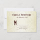 Une carte de réponse mariage campagnard rustique sur un arrière - plan d'élégants tourbillons fleurit. Entièrement personnalisable avec vos propres détails. Le verso de l'invitation a "RSVP". Voici l'ensemble d'invitations personnalisées de mariage correspondant :