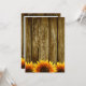 Country Western Wood Sunflower Wedding Invitations—faites correspondre aux cartes RSVP et d'autres informations ci-dessous sur cette page. Complétez votre thème mariage de tournesol avec ces invitations qui présentent une texture en bois comme un arrière - plan avec des tournesols vibrants au fond de l'avant et à l'arrière de chaque invitation. Ces invitations à un mariage sont réglées sur un stock de carte de base de haute qualité; cependant, vous pouvez changer le stock en lin, feutre (gaufré), recyclé et plusieurs teintes métalliques si vous voulez sous le numéro 2 (choisissez votre style, votre taille et votre type de papier) sous le bouton orange ajouter au chariot. Une liste des coûts supplémentaires pour un stock de carte de crédit s'affiche également sous cette option. Chaque invitation est accompagnée d'une enveloppe blanche. Voir ci-dessous les cartes RSVP de mariage correspondantes pour compléter la suite.