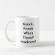 Appréciez cette tasse de satire comportant un croquis de stylo de vieillard frappant sur la porte. Frappez le coup, dont là ? Découverte d'Assurance-maladie cette conception sur un certain nombre d'autres articles comprenant des mousepads, des T-shirts, des autocollants et plus