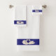 Un couple de cygnes sur un ensemble de serviettes bleu marine et blanc. Idéal pour tous.