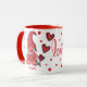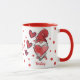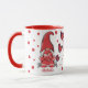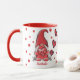 C'est une adorable tasse pour offrir à quelqu'un pour la Saint-Valentin. Ce design est composé d'une femme et d'un homme gnome mignon tenant un coeur dans les mains avec un point et un motif de coeur et le mot amour sur le devant de la tasse. Les noms sous les gnomes sont personnalisables avec les noms du couple.