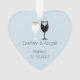 Ce ornement de coeur présente un art vinaigrette stylisé d'une mariée et d'un marié avec espace pour les noms des couples et la date du mariage. C'est un cadeau parfait pour les mariages de Noël ou d'hiver.