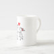 jolie porcelaine, bonne dimension effet brillant bien dans l'ensemble. Le motif et les couleurs sont réussis.Je trouve néanmoins dommage de ne pas occuper tout l'espace avc le motif car la partie rouge au dos de la tasse est trop présente et pas intéressante visuellement.