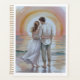 A beautiful planner of a loving couple on the beach at sunset conveying a romantic and peaceful emotion