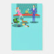 Ce couple rétro avec Dog Post-It Notes ressemble à une scène d'une comédie romantique. Le style des années 1960, le design minimaliste de l'art, présente un beau couple et vous invite à passer une soirée romantique chez vous. La salle sophistiquée est dotée d'un aqua et d'une cheminée en briques turquoises avec une corniche rouge vif. Une belle femme rouge vêtue d'une robe rose et brillante est perchée sur la corniche. Elle savoure un martini avec une olive flottante, un feu torride, une bonne musique, et la compagnie un homme grand, sombre et beau. L'homme porte un costume bleu et une cravate rouge. Son verre de martini est élevé pour trinquer son charmant compagnon. D'autre part, il tient un album vinyle. A ses pieds, nous voyons un dachshund des plus adorables portant un collier rouge. Le chien édulcorant se déplace en direction d'un joueur de disque vert aux pattes orange et fuseau. Au sol, il y a un groupe coloré de disques vinyliques amusants, éclectiques.Santé! Voici la soirée parfaite à la maison.