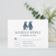 Elégante carte RSVP avec deux mignons manchots tenant la main et debout à côté de l'autre.