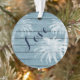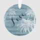 Cette décoration de Noël de l'Amour de la plage est ornée d'un palmier recouvert d'un faux arrière - plan en bois rustique dans les tons bleu et blanc. C'est parfait pour un premier Noël en couple. Il peut être personnalisé avec des noms et une date ou une année. *
