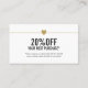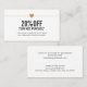 Elégant modèle de carte de réduction personnalisable avec arrière - plan blanc et fausse ligne or/icône coeur. Outil marketing parfait pour les professionnels de la beauté, salon de beauté.