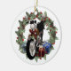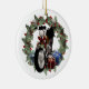 Moto de vacances et couronne double face personnalisées ornement céramique ronde. Un grand ornement pour les amis et la famille ou quelqu'un qui aime "monter"... une moto qui est! L'avant de l'ornement présente un art numérique 3d d'une moto avec des cadeaux autour et une couronne de pin derrière elle. Sur le dos, on lit "Joyeux Noël" en rouge cool et on y trouve aussi l'année en dessous. Toutes les zones de texte sont sous forme modèle et peuvent être modifiées par vous dans les zones de modèle faciles à utiliser directement sur cette page. Pour plus d'ornements de vacances d'art numérique uniques, visitez notre boutique !