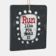 Un design typographique mignon qui dit "Run Like You Mean It". Il présente du texte noir et rouge sur un rectangle blanc avec des points blancs amusants et amusants qui l'entourent, le tout sur un arrière - plan gris.