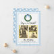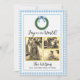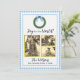 Cette carte de Noël classique comporte une bordure en plaid bleu aquarelle avec une couronne d'aquarelle avec arc bleu. Personnalisez avec vos propres noms et photos de famille. Lit "Joy to the World !"