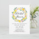 Bonjour, citrons! Invitez vos invités à votre événement avec cette invitation de baby shower de mariage botanique aux agrumes. Elle présente une couronne aquarelle de citrons pastel et de fleurs roses. Personnalisez en ajoutant les détails de votre événement. Cette invitation au citron est parfaite pour les baby showers de mariage d'été et de printemps.