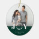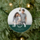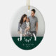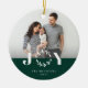 Un ornement souvenir commémoratif présentant la photo du client avec un Joy blanc superposé et une barre de couleur en bas. Le dos a une couleur unie coordonnée et une zone de texte pour un message supplémentaire.