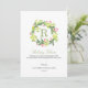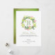 La conception présente une couronne en aquarelle verte et rouge fantaisiste avec le monogramme de la famille en rouge, en écriture et en police classique.