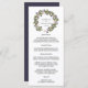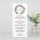 Notre menu de mariage chic présente vos plats de départ, vos entrées et vos desserts dans une écriture élégante, avec vos noms encerclés par une couronne botanique verte de feuilles et de baies d'hiver en aquarelle.