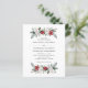 Ce faire-part de mariage de vacances économique simple et élégant présente des bouquets d'aquarelle élégants, faits de verdure moderne et de fleurs de Noël rouges et blanches sur un arrière - plan blanc. Au fond de l'invitation se trouve une couronne de Noël élégante et assortie.