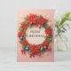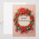Couronne de Noël lumineuse et joyeuse ornée de poinsettias vibrants, d'ornements scintillants, de flocons de neige et de rubans sur un fond chaud et doux symbolisant la joie et les célébrations des fêtes.