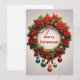 Couronne de Noël lumineuse et joyeuse ornée de poinsettias vibrants, d'ornements scintillants, de flocons de neige et de rubans sur un fond chaud et doux symbolisant la joie et les célébrations des fêtes.