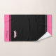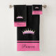 Ensemble de serviettes de bain élégantes et simples avec couronne de princesse stylisée et texte sur fond rose néon et noir. Image et texte uniquement sur un côté ! Idéal pour les filles ! Texte prêt à être personnalisé.