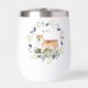 Mug mignon pour la maman de chien fière. La couronne florale à l'aquarelle est un mélange de fleurs bleues et de feuillage vert frais de printemps. L'illustration du portrait de Corgi à l'aquarelle avec texte personnalisé ajoute le nom du chiot ou le vôtre. Le mug parfait pour un amateur de chiens.