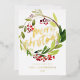 Carte de vacances à la feuille d'or avec fleurs à l'aquarelle pour un Noël très joyeux. Feuillage peint à l'aquarelle et texte à l'écriture moderne. Fait partie d'une collection.