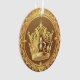 Une couronne dorée magnifiquement décorée avec des motifs complexes encerclés par un motif floral, symbolisant la royauté, le luxe et la célébration, sur un fond doux et neutre qui rehausse son élégance royale.